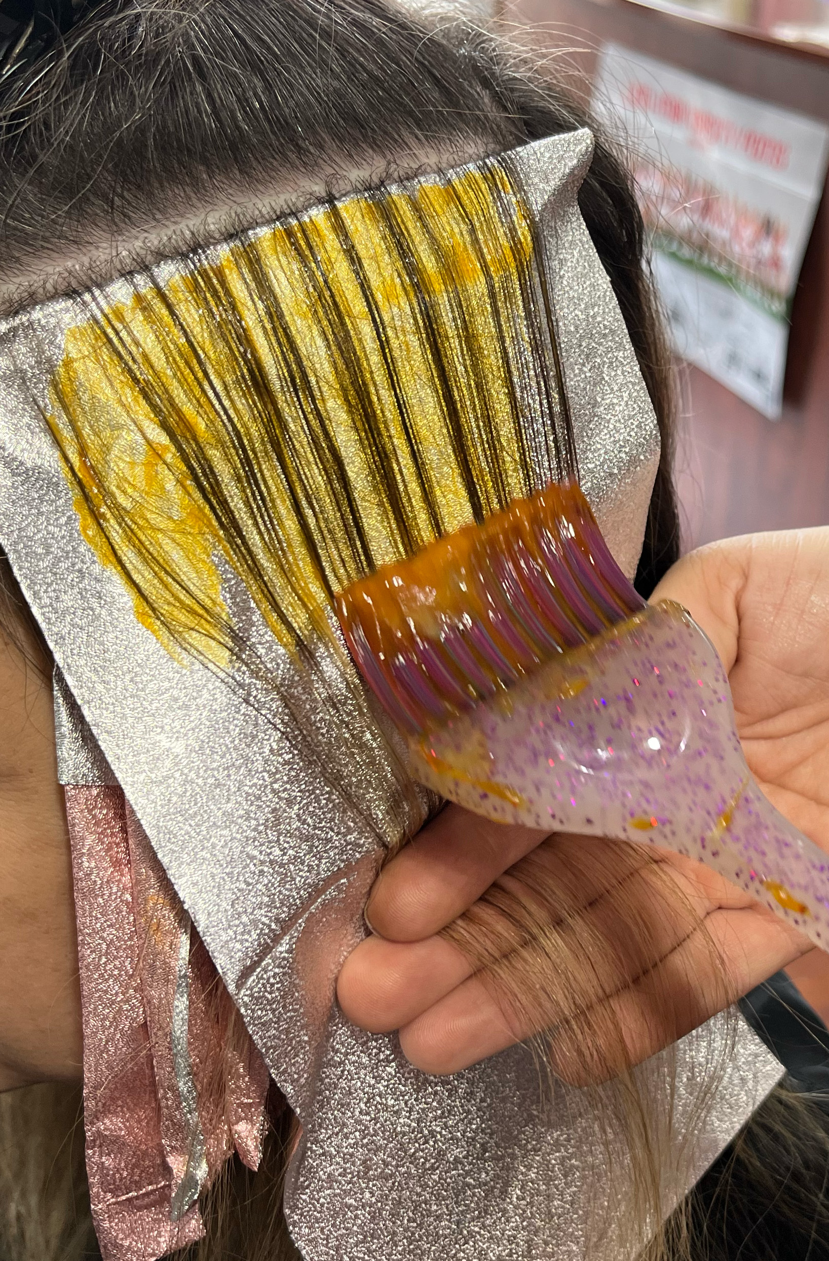 Olaplex is a bond builder added to the color. Olaplex works to rebuild broken bonds from within repairing, protecting, and strengthening hair. There is a $10 add on for any color using Olaplex.