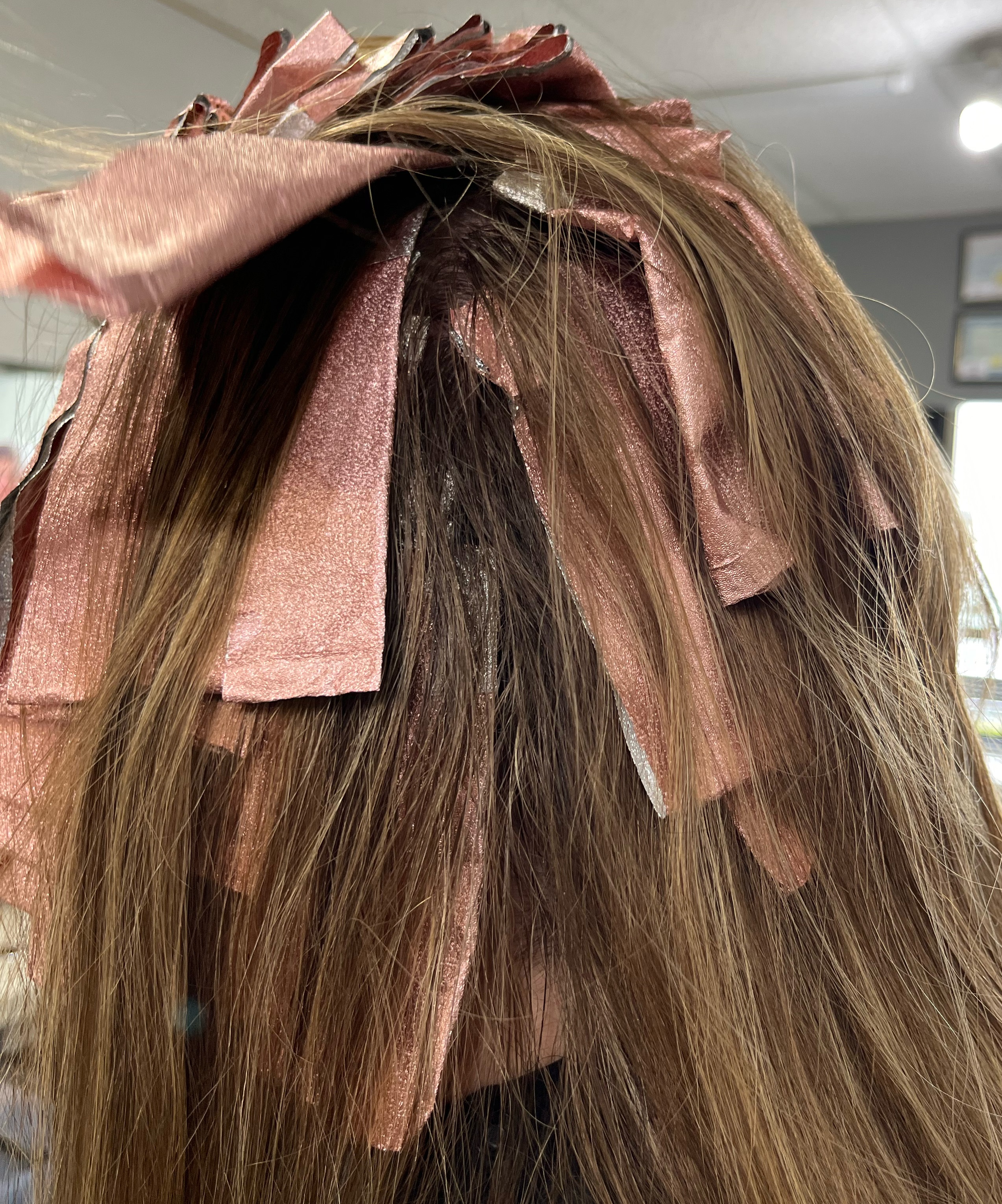 Highlights through the crown with a custom look created by foil.